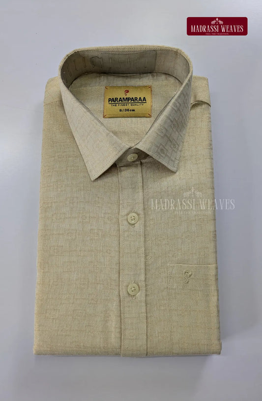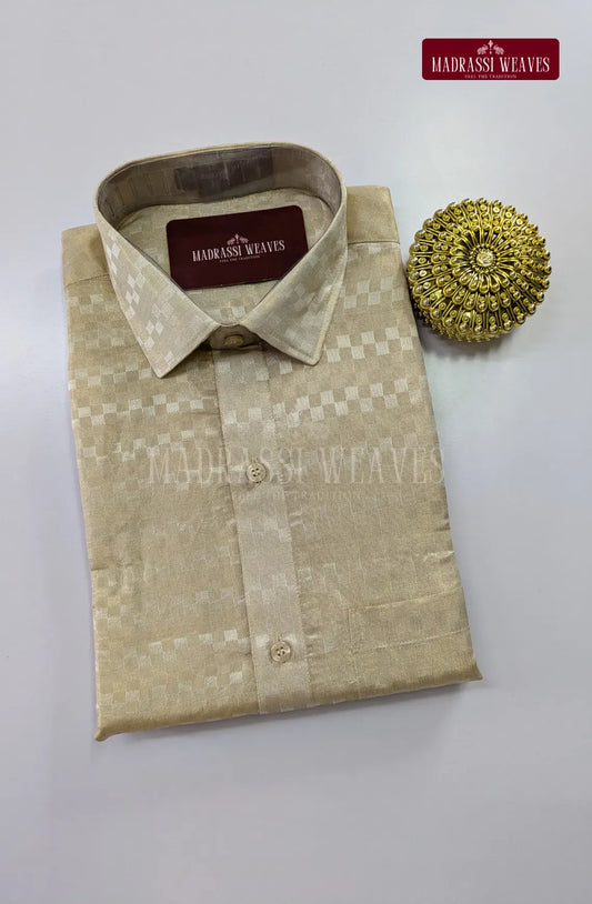 Textured Weave Japan Silk Dhoti Set - Sand Stone