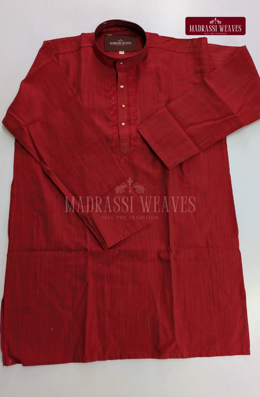 Ethnic Men's Cotton Kurta and Dhoti Set - Cherry Red