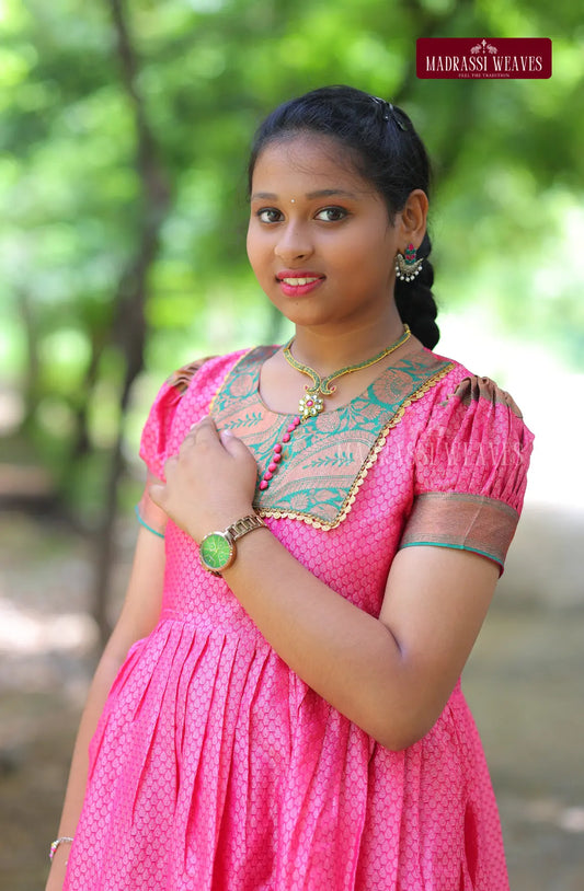 Ethnic Zari Woven Gown For Girls & Women - Pinky Tales