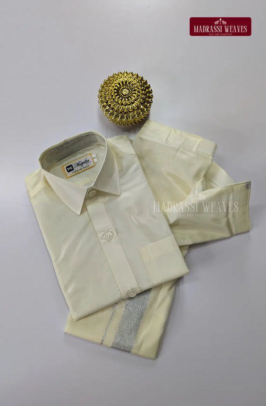 Luxury Zari Jacquard Border Wedding Men's Dhoti Set With Towel - Ivory