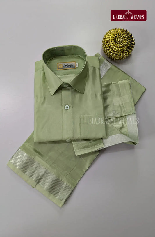 Father Son Combo Japan Silk Dhoti Set - Pastel Green