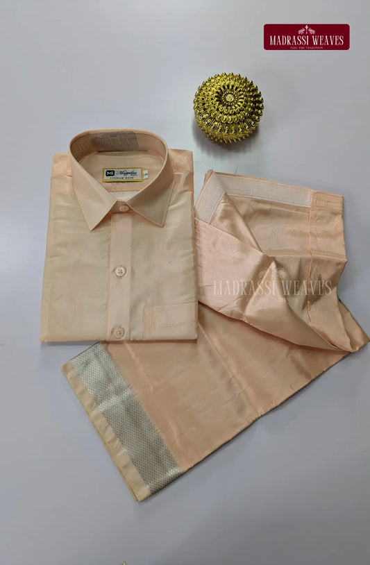 Father Son Combo Japan Silk Dhoti Set - Peach