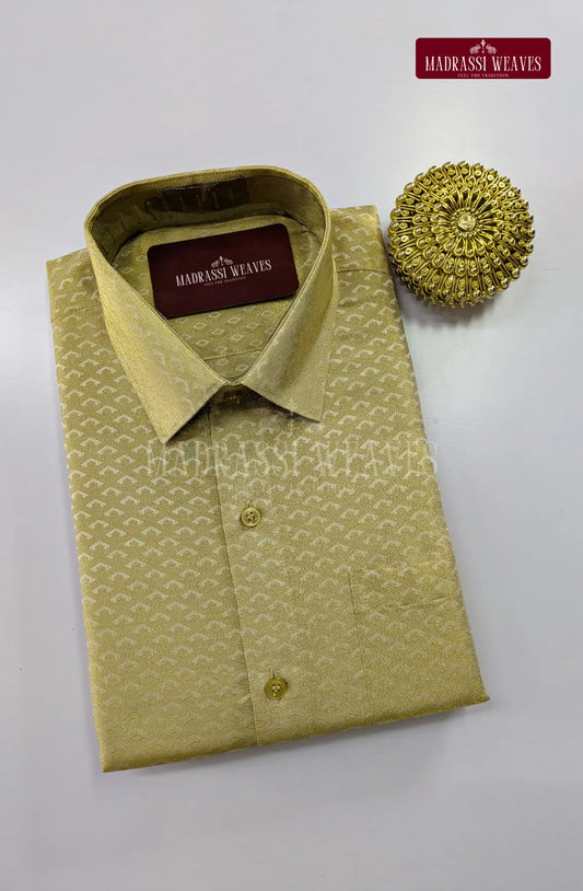 Wedding Zari Brocade Shirt and Dhoti Set - Gold