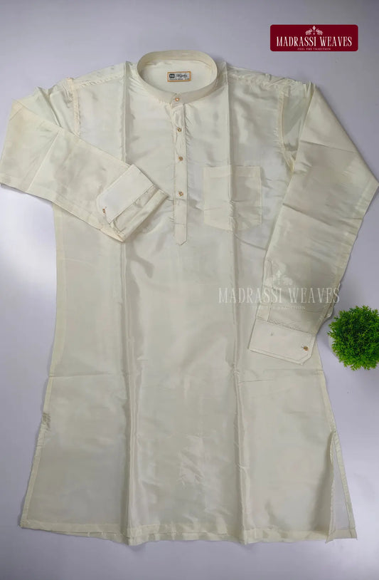Premium Art Silk Kurta And Dhoti set - Pearl White