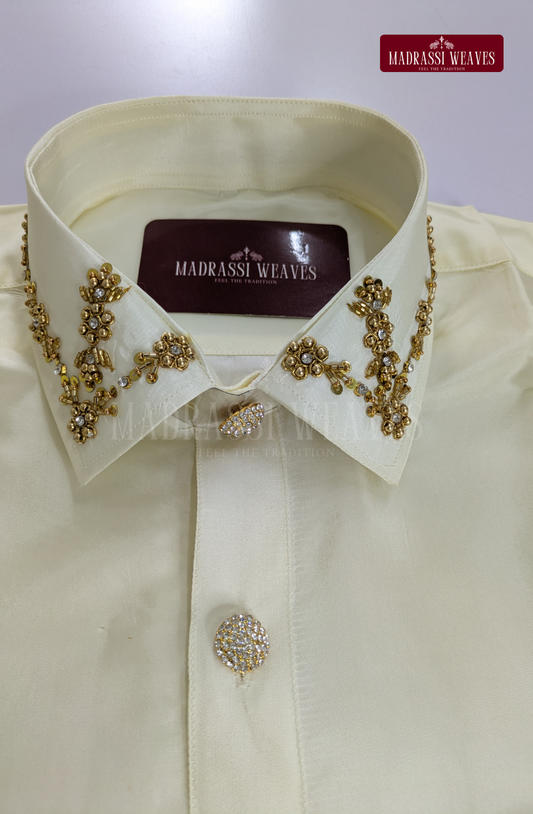 Wedding Zari Brocade Shirt and Dhoti Set - Gold