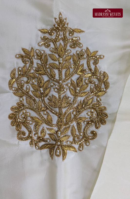 Luxury Aari Work Wedding Silk Dhoti Set (HandCrafted) -(DESPATCH TIME 15 DAYS)