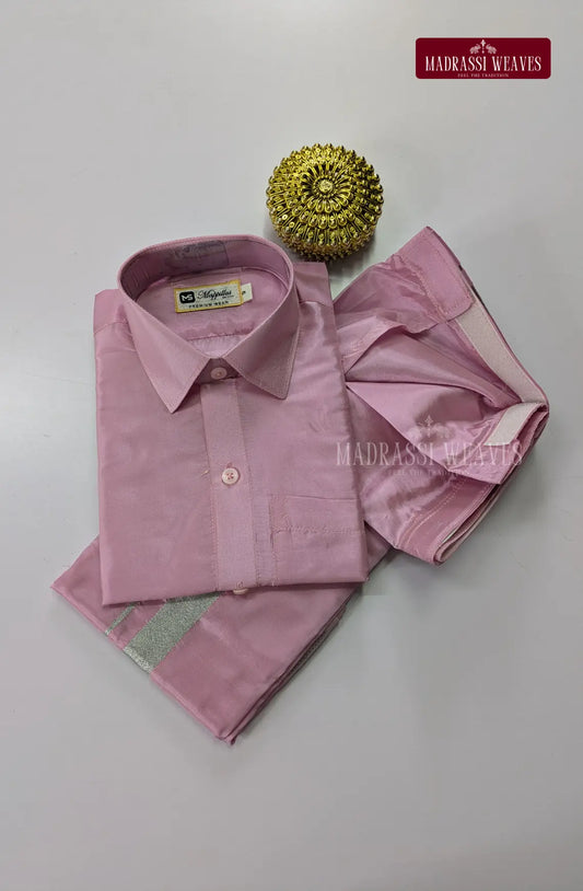 Premium Silk Dhoti Set with Colour Zari - Pink