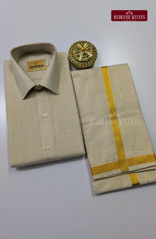 Men's Cotton Tissue Dhoti Set With Gold Zari