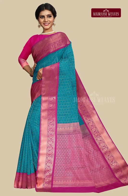 Kanchi Semi Silk Vaira Oosi Saree - Blue