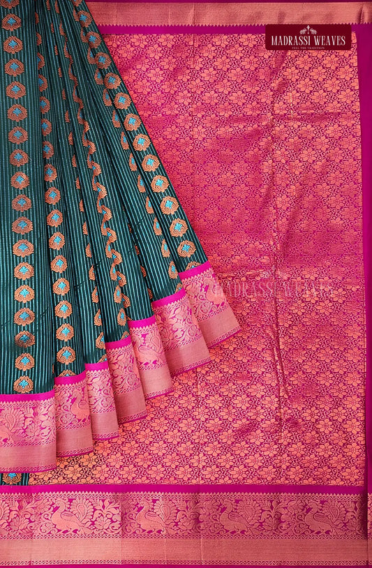 Premium Kalyani Korvai Tower Butta Sarees - Grass Green