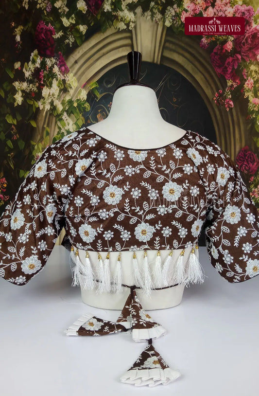 V Neck Heavy Embroidered Georgette Silk Blouse