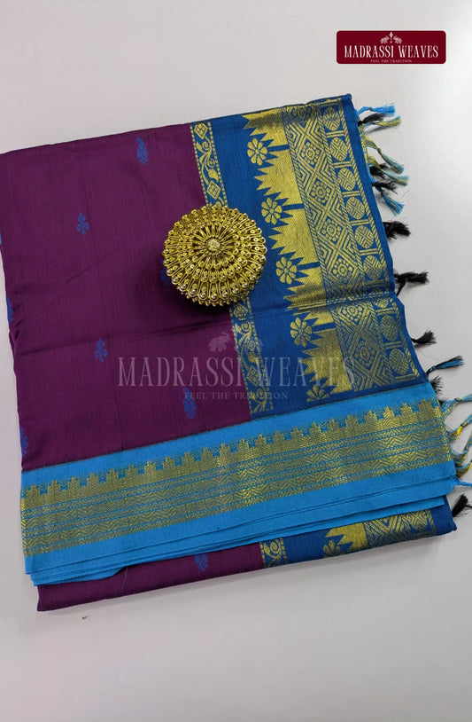 Premium Kalyani Gadwal Cotton Saree - Jamoon Fruit