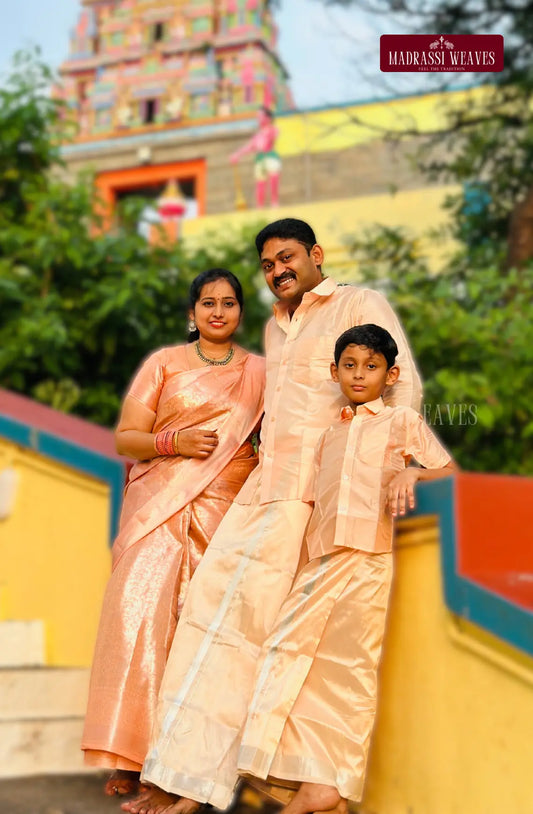 Premium Silk Couple Combo Set with Colour Zari - Copper