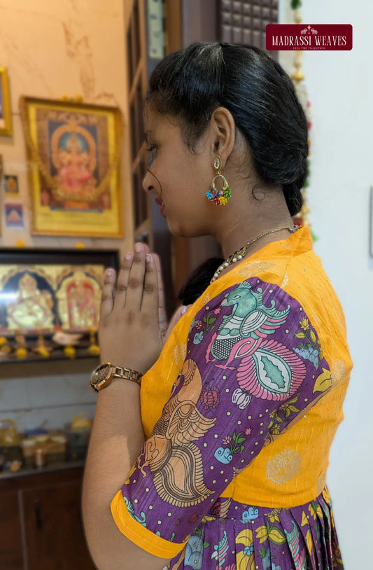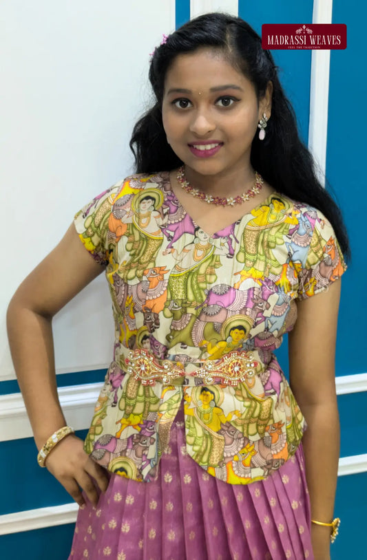 Premium Indo-western Girl's Dress - Kalamkari Twinkle Tales