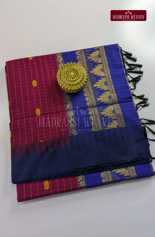 Premium Kalyani Gadwal Kattam Sarees - Jamoon Fruit