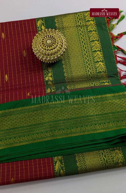 Premium Kalyani Gadwal Kattam Butta Sarees - Kum Kum
