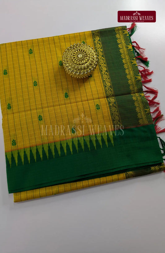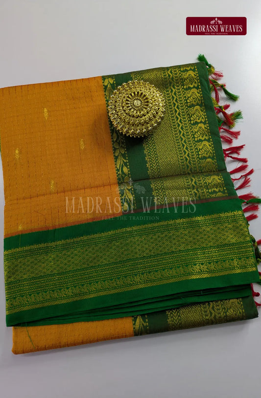Premium Kalyani Gadwal Kattam Sarees - Mustard