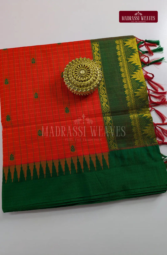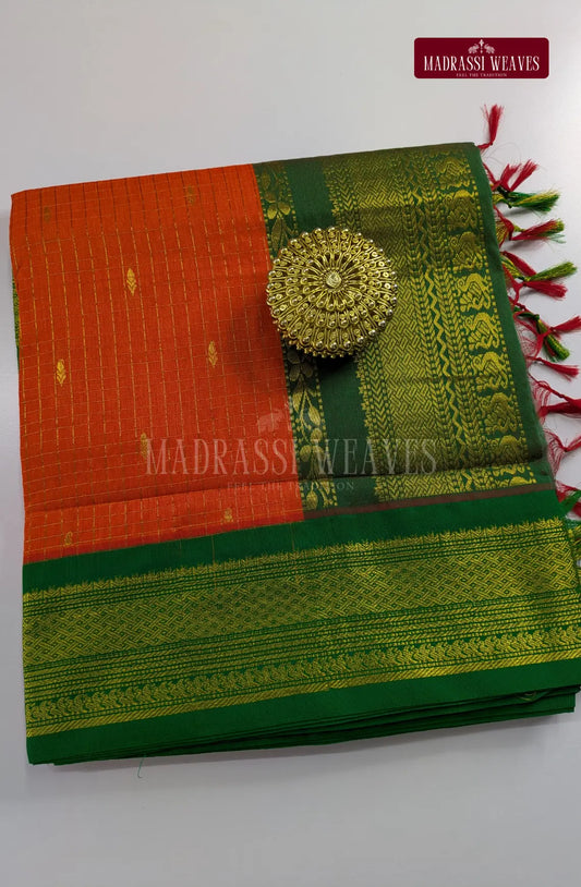 Premium Kalyani Gadwal Kattam Butta Sarees - Orange