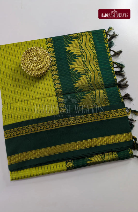 Premium Kalyani Gadwal Kattam Sarees - Lumous Lime