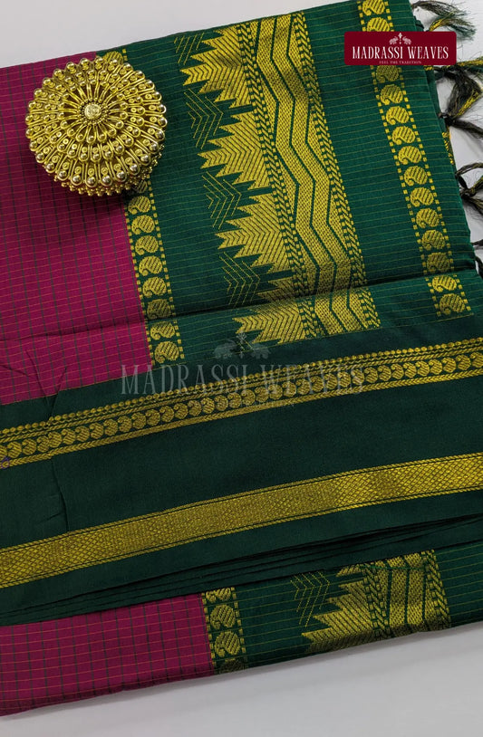 Premium Kalyani Gadwal Kattam Sarees - Rani Pink