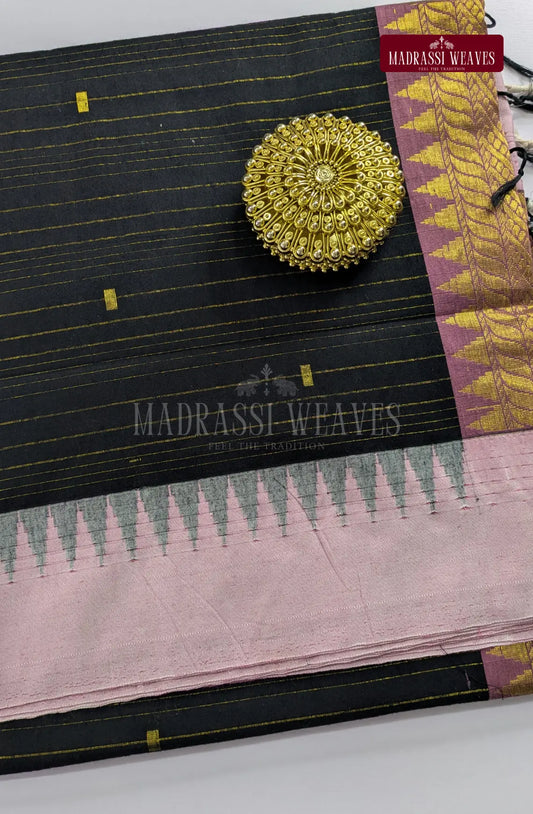 Premium Kalyani Korvai Tower Butta Sarees - Black