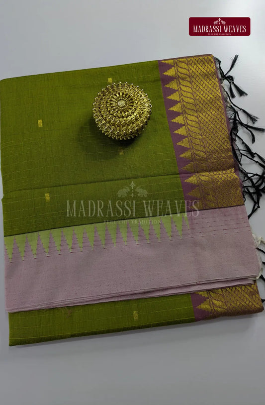 Premium Kalyani Korvai Tower Butta Sarees - Grass Green