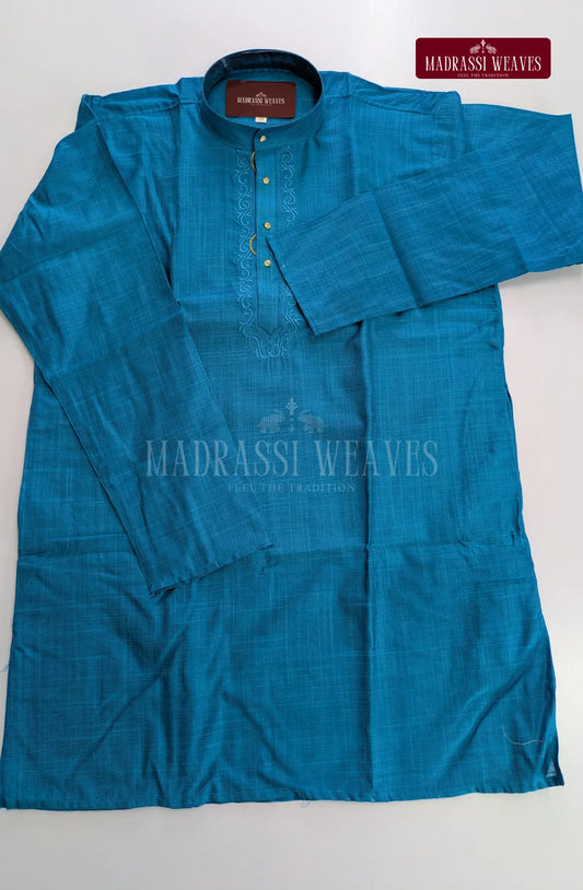 Casual Men's Cotton Dhoti Set - Aqua Blue