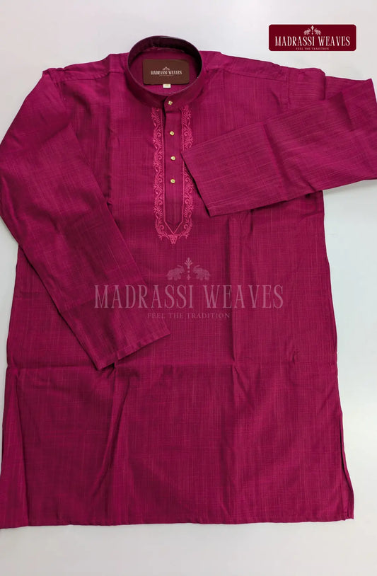 Ethnic Men's Cotton Kurta and Dhoti Set - Burgundy
