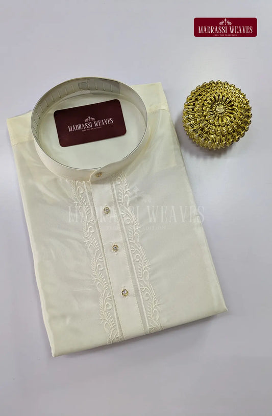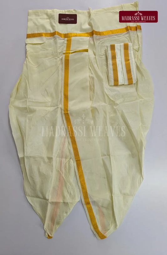 Premium Art Silk Tissue Dhoti Set - Ivory