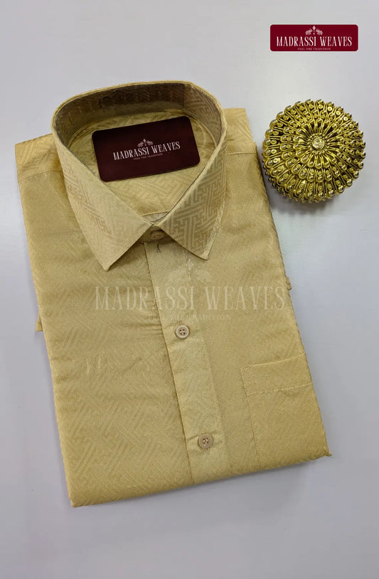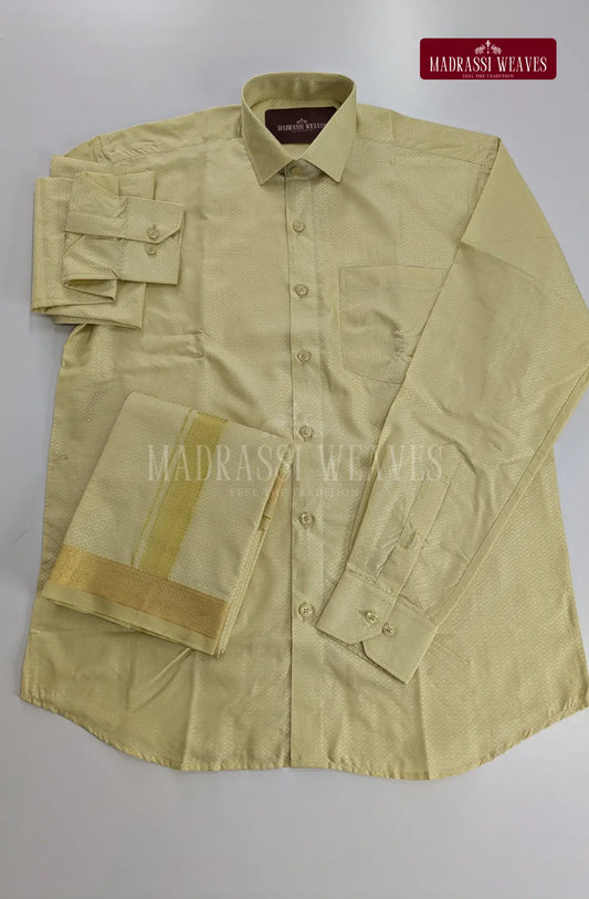 Premium Men's Wedding Tissue Silk Dhoti Set - Gold 1