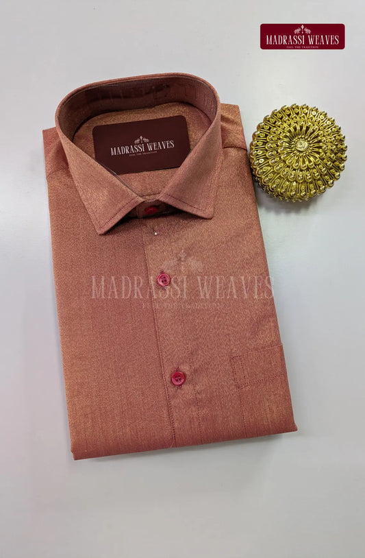 Luxury Zari Jacquard Border Wedding Men's Dhoti Set With Towel - Rose Gold
