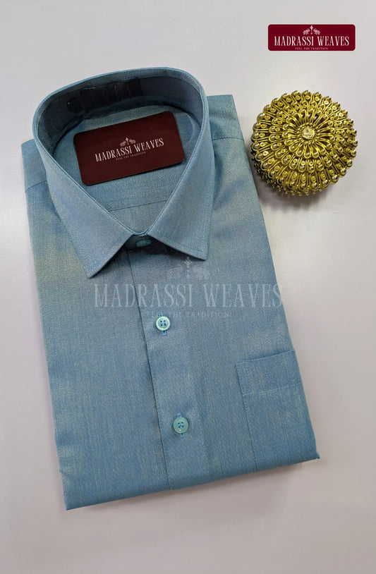 Premium Shiny Cotton Tissue Dhoti Set - Sky Blue
