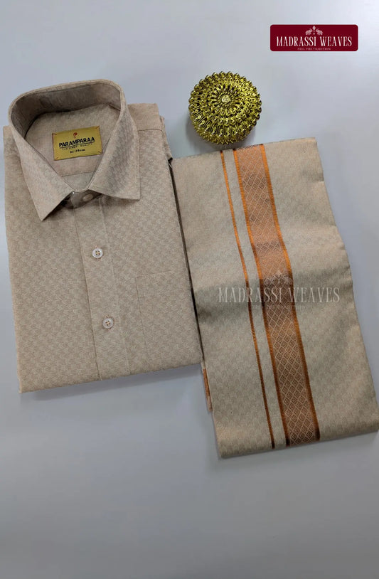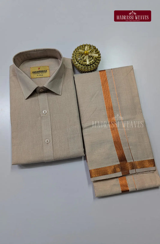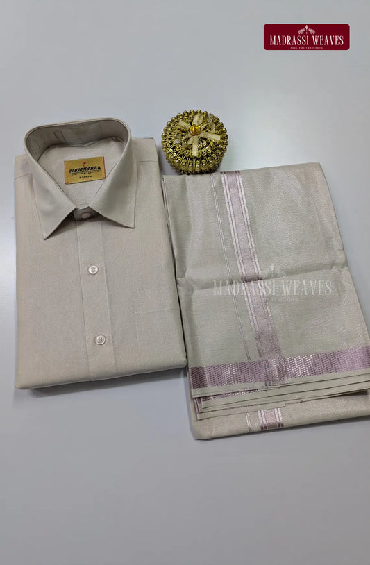 Men's Cotton Tissue Dhoti Set With Copper Zari