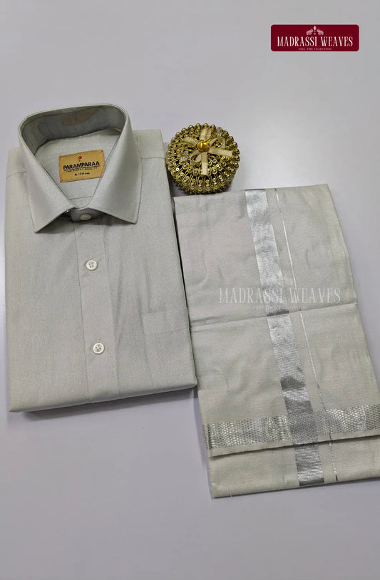 Men's Cotton Tissue Dhoti Set With Silver Zari