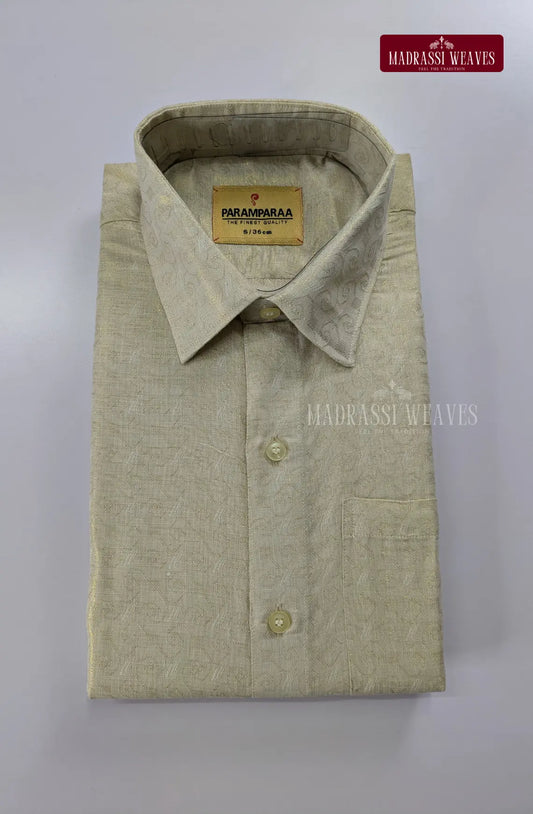 Wedding Zari Brocade Shirt and Dhoti Set - Gold