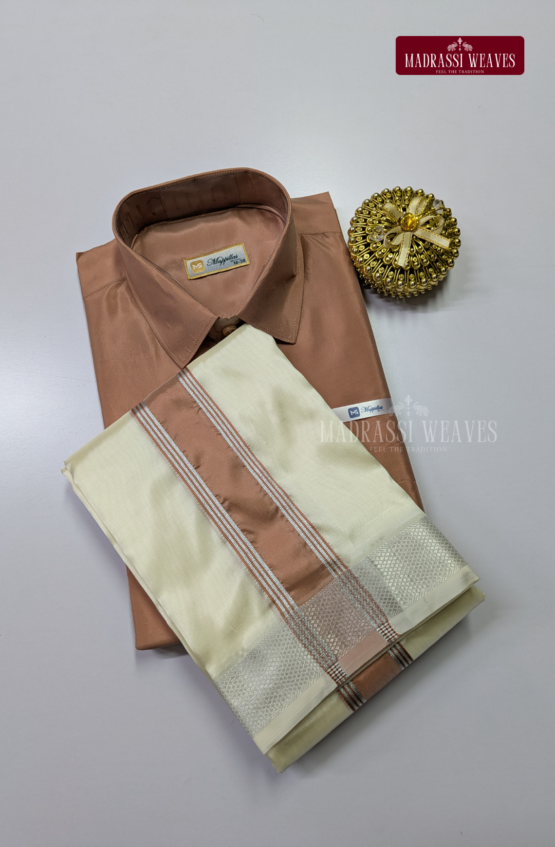 Premium Silk Dhoti Set with Colour Zari - Copper