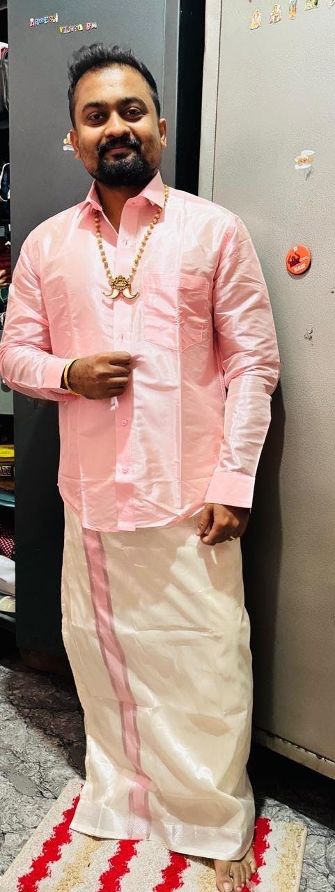Overall look you attain after wearing the clothe is just splendid, i suggest a blind buy for dhoti set from “madrassi weaves”.