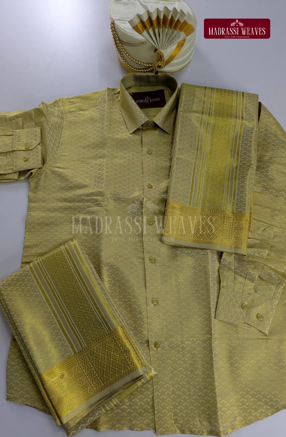 Premium Men's Wedding Tissue Silk Dhoti Set - Gold 1