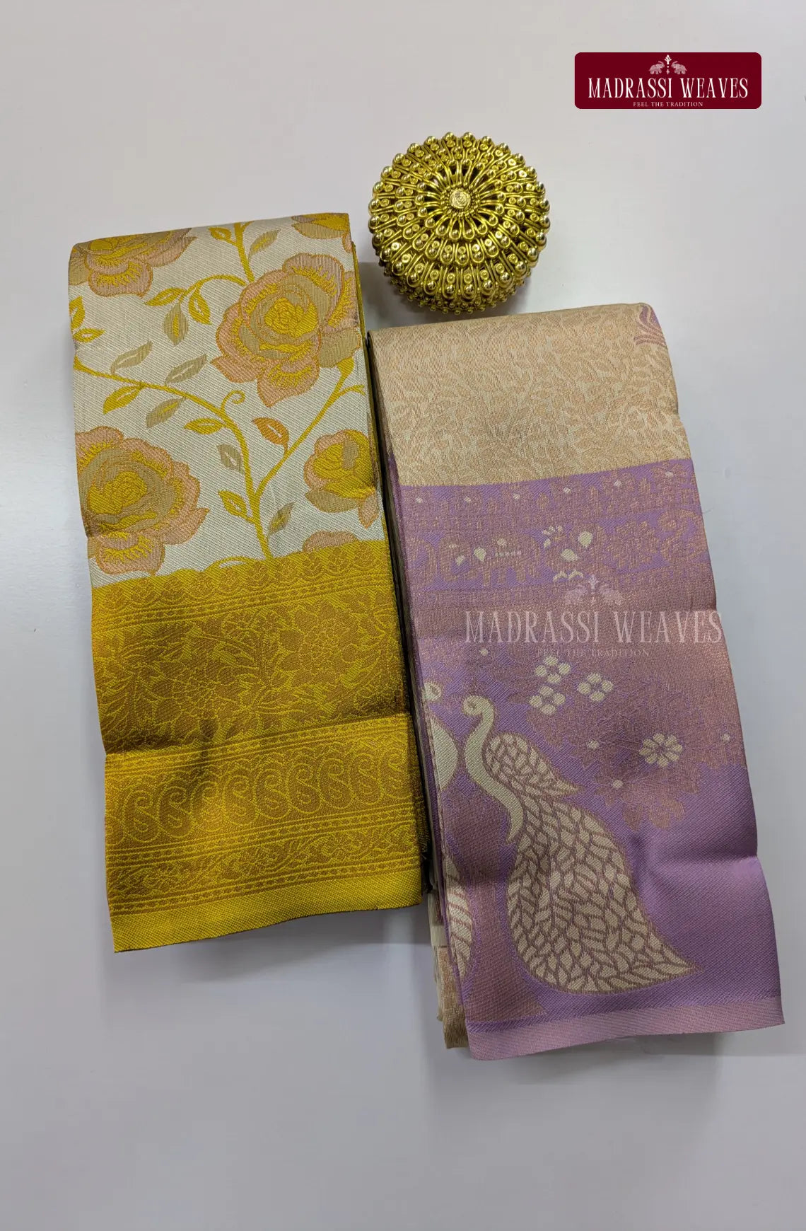 The Zari Woven Combo Collection Saree showcases a striking blend cream hues, crafted from soft tissue fabric for a delicate yet durable feel. This saree features traditional Kanchivaram weaving enriched with elegant Meena Butta designs, making it an excellent choice for weddings and festive occasions. Combining timeless craftsmanship with contemporary trends, it offers a stylish and budget-friendly option for those seeking both comfort and sophistication in their ethnic wardrobe. Ideal for online shoppers looking to embrace classic elegance with modern appeal.